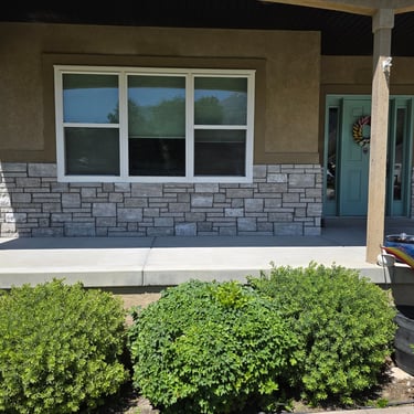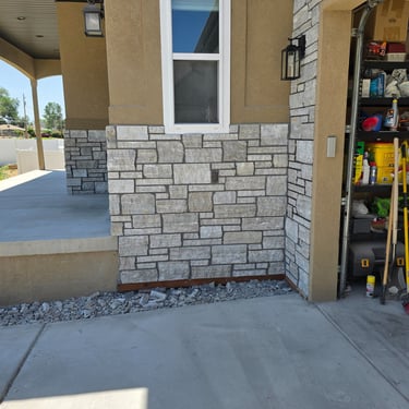 Exterior remodel - remove aging and deteriorating manufactured stone and update with natural stone thin veneer to bring new life and character to this home.