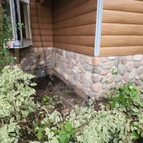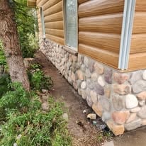 Exterior remodel adding river rock manufactured stone to match portions of the home with exiting stone.